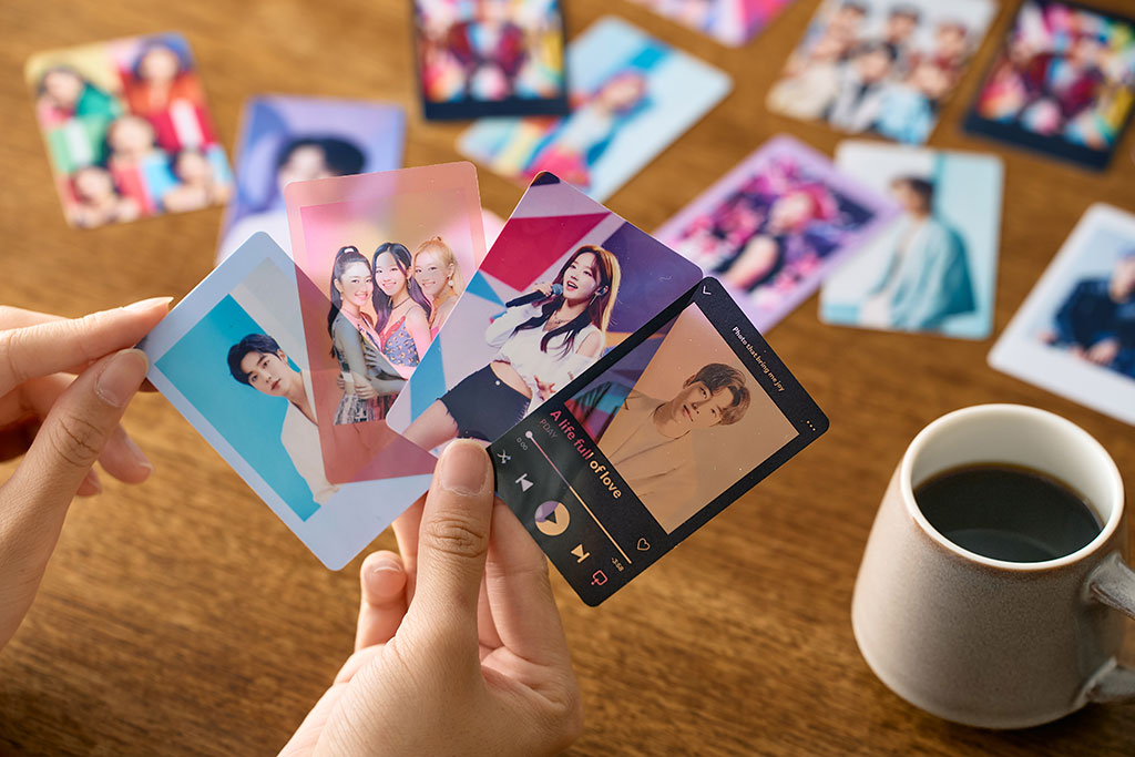スマホやPCの写真・デザインデータを使って、フォトパネルやカレンダー、透明トレカなど、オリジナルグッズを簡単に大量注文できます。高品質で統一感のある仕上がりだから、イベントやプロモーション用のノベルティとしても安心して利用可能です。